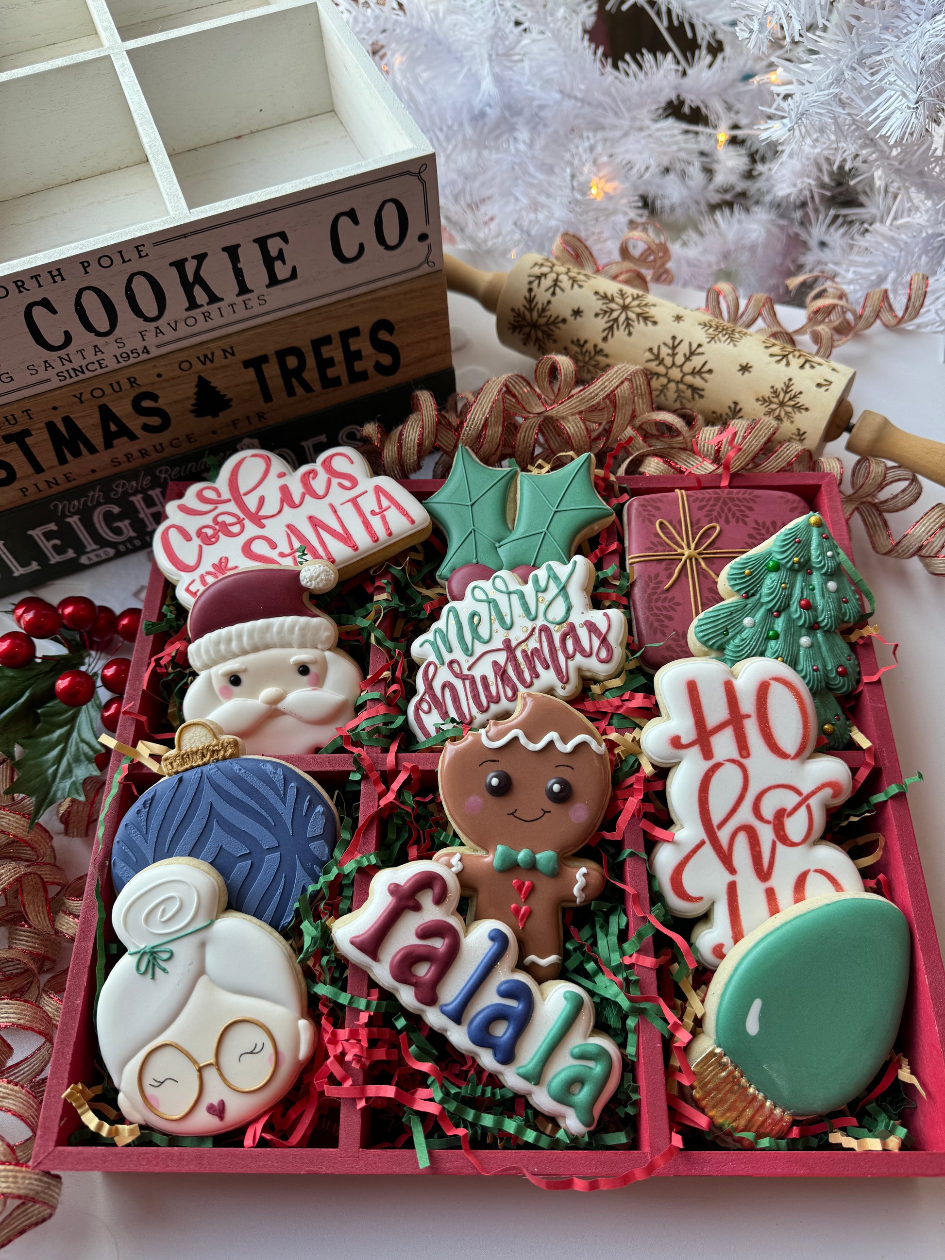 Cookie will be heat sealed and come in one of the crates like the photo! (Crates will vary but are either red, green or white)