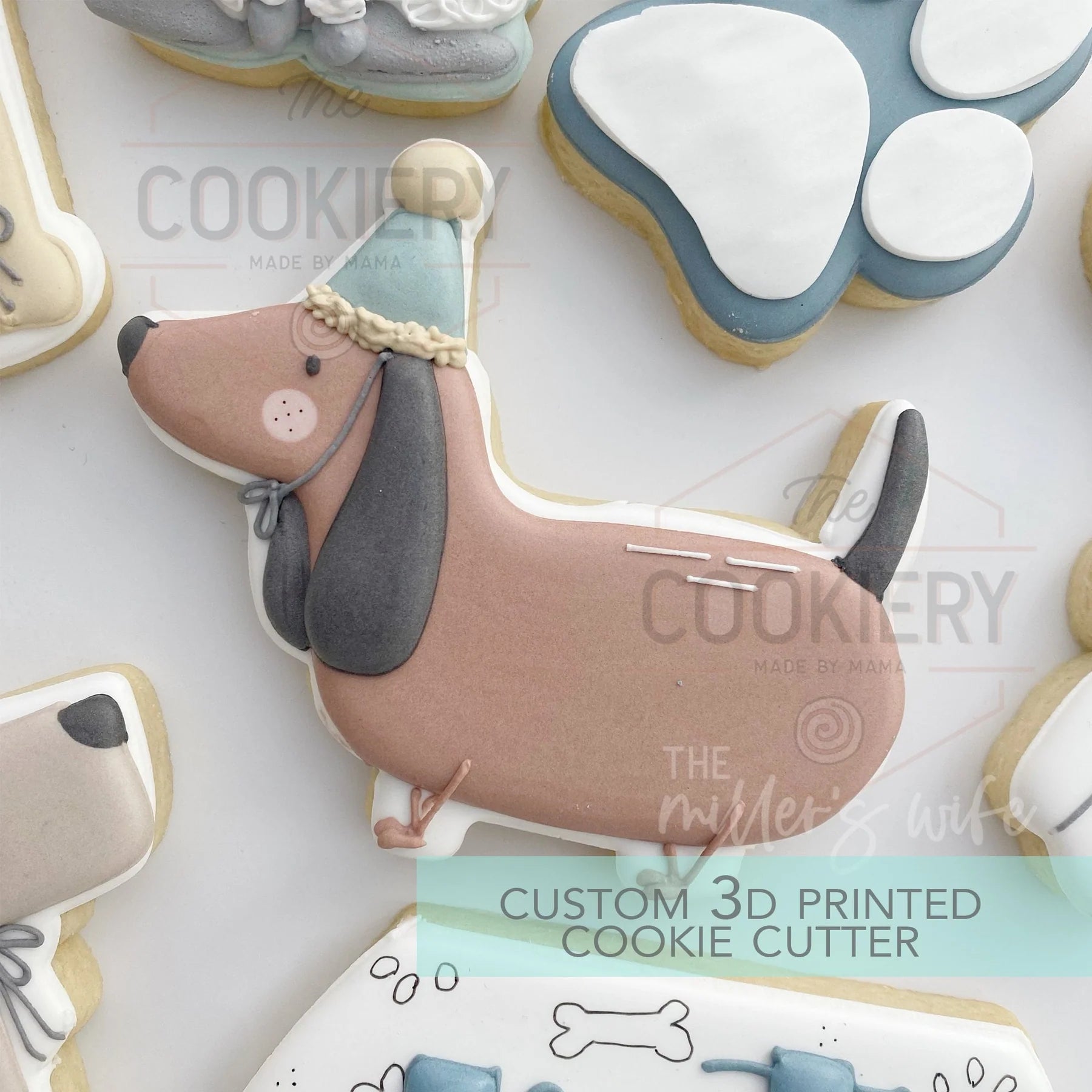 Dachshund with Party Hat Cookie Cutter - Big Dog Breed Cookie Cutter - 4"