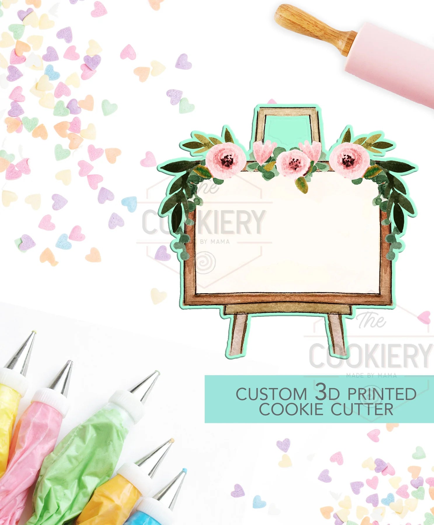 Floral Wooden Sign Cookie Cutter, Wooden Stand Cookie Cutter - Wooden Easel Cookie Cutter - 3.5"