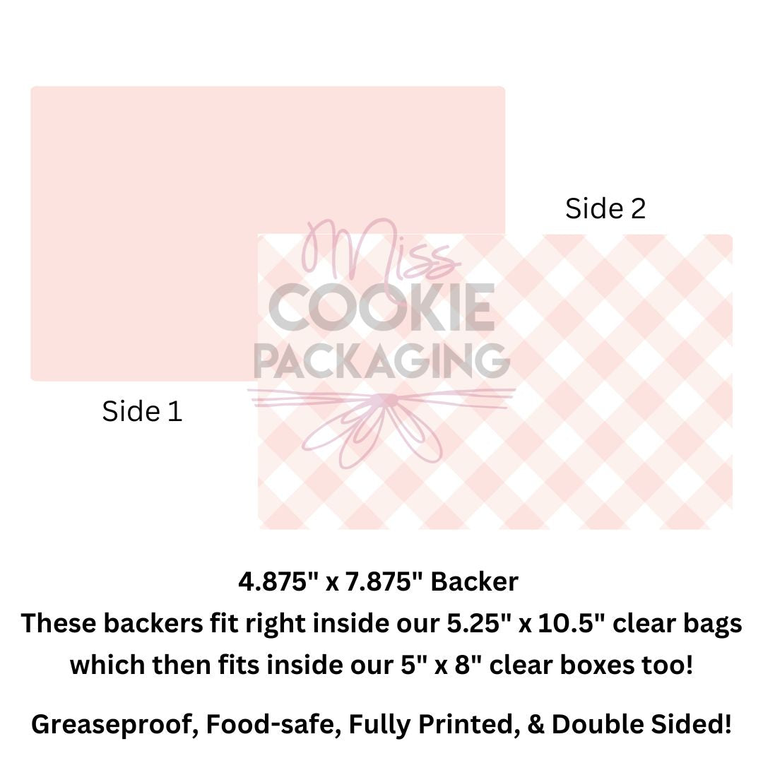 You can slip these super sturdy cards right into our 5.25″ x 10.5″ crystal clear poly bags, put your cookies in, heat seal the top and/or tie with one of our pre-tied bows! Super easy and oh so cute for festive holiday themes! If you want to add an extra layer of protection for your cookies, you can also fit this backer with your cookies right inside 5″ x 8″ clear boxes too!