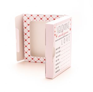 These cookie boxes will be perfect for packaging 2 full-sized Valentine’s Day cookies!