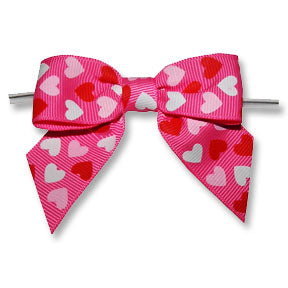 Large Pink Grosgrain Bow with Hearts on Clear Twistie ~ 25 Count