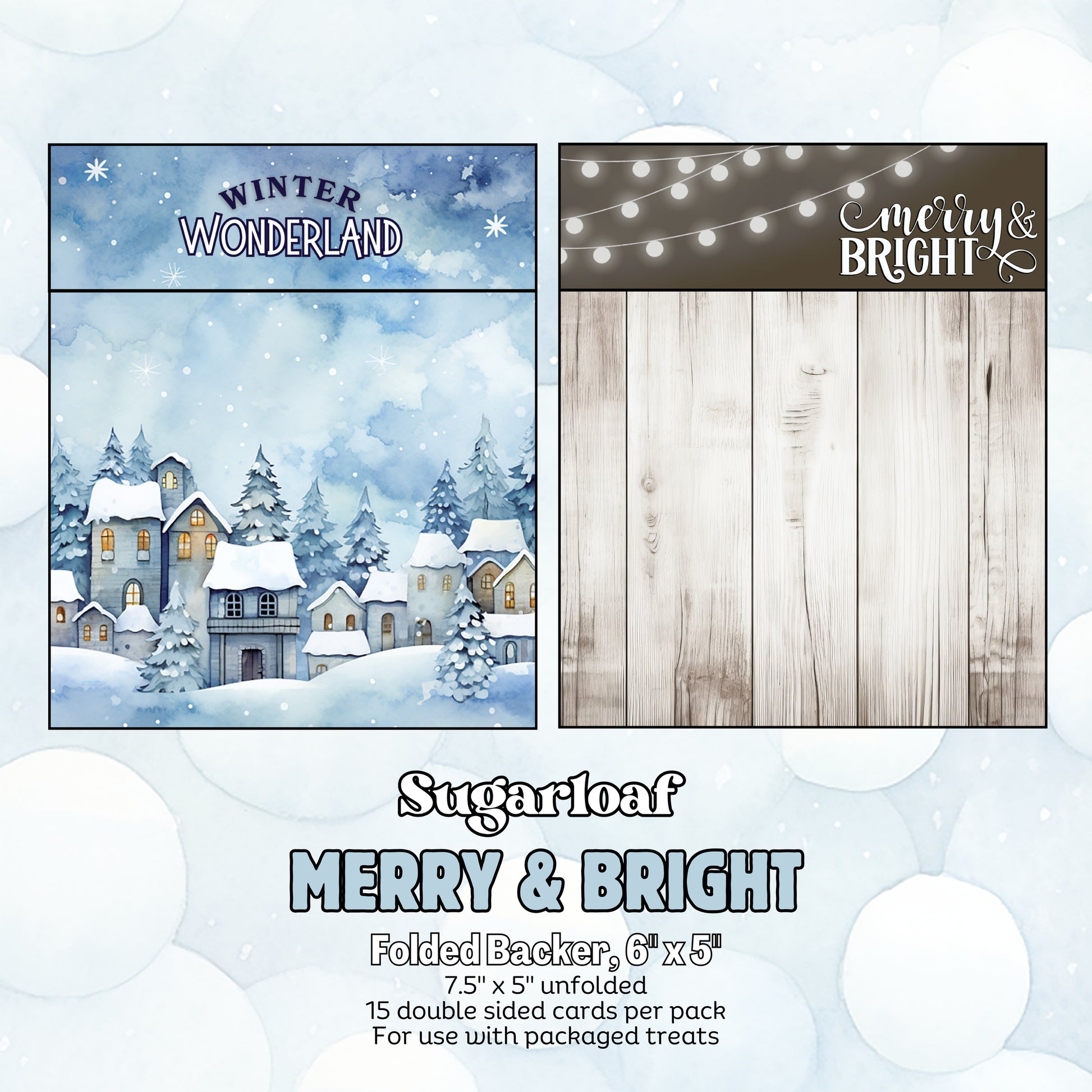 6" x 5" Folded Backer in "Merry & Bright" and "Winter Wonderland" on the opposite side.