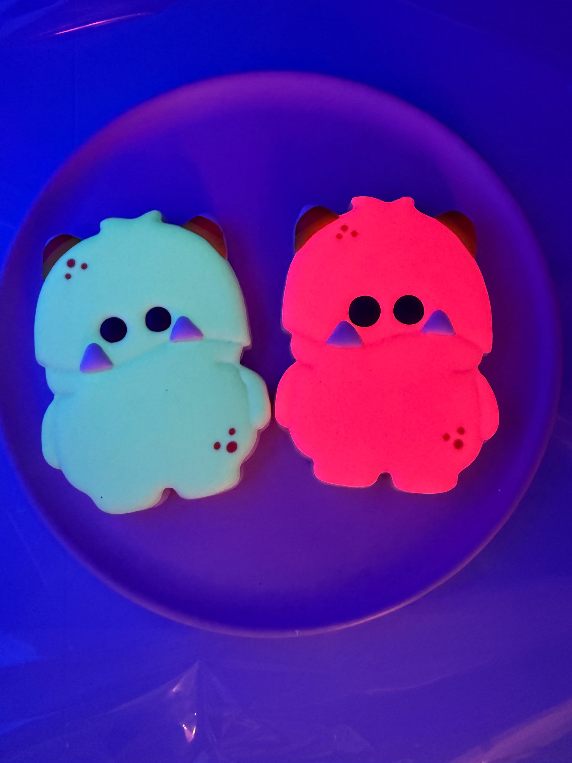These glow under black light and comes with a mini blacklight key chain!