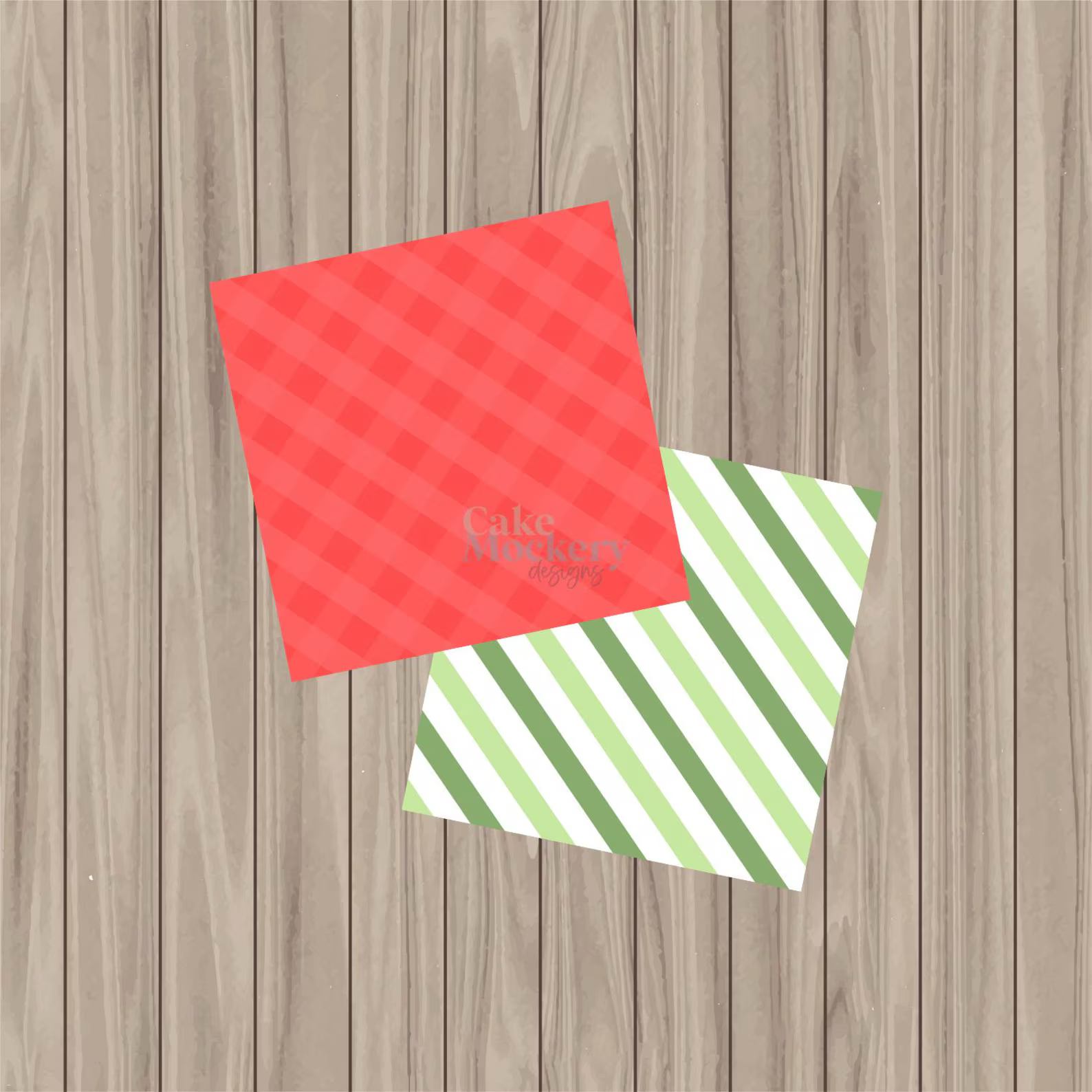 Pre-Printed PHYSICAL Reversible Box Backer - Red Gingham/Green Stripe - 4.5"x4.5"