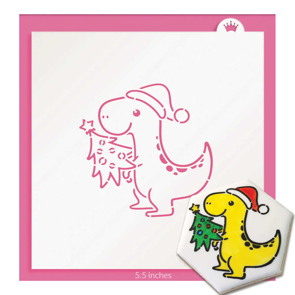 Tree Rex Stencil - Design size is 3" x 2.83" Use as a Paint your Own stencil, or as it's own design. Overall stencil size approximately 5.5" x 5.5". PINK sections in image are the open sections. Stencils are 5mil Food Grade plastic, washable and reusable.